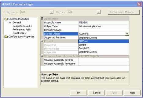 Right click on the project file in the Solution Explorer and select Properties at the bottom of the menu. From the dialogue box (shown below) select the class you want as the Startup Object from the list of classes.